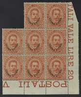 1893 - 20 c. arancio blocco di otto esemplari - Cert. Cardillo