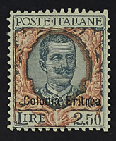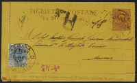 1895 - Seconda emissione 25 c. azzurro su biglietto postale Regno 20 c. del 30 aprile 1902 da Asmara per Ancona - Unito altro biglietto postale raccomandato 20 c. con affrancatura supplementare di Regno 25 c. + 5 c. del maggio 1895 da Torino per Melle (Belgio) e read all