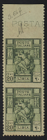 1926 - Sibilla Libica 20 c. coppia verticale bordo di foglio superiore non dentellata al centro e in alto - Non comune - Firma G. Bolaffi
