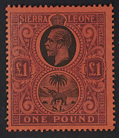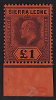 1911 - Edoardo VII 1 £. violetto e nero su carta rossa bordo di foglio inferiore