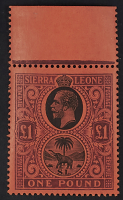 1912 - Giorgio V 1 £. violetto e nero su carta rossa bordo di foglio superiore