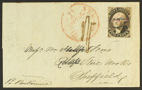 1847 - Prima emissione 10 c. nero su lettera del 18 settembre 1850 da Troy per Montreal - Unita altra lettera del 12 febbraio 1848 da Baltimora per il Maryland affrancata con 5 c. bruno della stessa emissione - Insieme splendido - Cert. Bolaffi