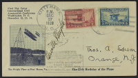1928 - Orville Wright - Busta viaggiata commemorativa del 25° anniversario del primo volo affrancata per 7 c. e annullata a Kitty Hawk con l'autografo del fratello all'epoca superstite