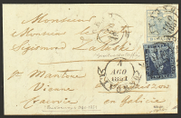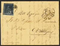1850/51 - 6 cr. azzurro chiaro su carta azzurra in affrancatura mista con Austria I emissione 2 K. azzurro su lettera