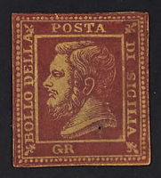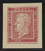 1859 - Saggio Pampillonia senza indicazione del valore in rosso brunastro su carta sottile - Unico noto - Da esaminare