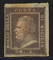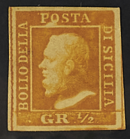 1859 - 1/2 gr. I tavola arancio carta di Palermo - Cert. Chiavarello - Firme E.D. e En. D.