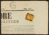 1859 - 1/2 gr. I tavola arancio carta di Napoli su giornale "Il vapore" del 3 novembre annullato a Palermo