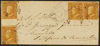 1859 - 1/2 gr. I tavola arancio carta di Napoli quattro esemplari su lettera del 3 marzo da Palermo per S. Stefano di Canastra - Piega orizzontale che interessa il solo esemplare inferiore - Cert. Diena - Firma Raybaudi