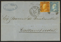 1859 - 1/2 gr. I tavola arancio carta di Napoli + 2 gr. III tavola azzurro chiaro su lettera del 1° novembre da Palermo per Caltanissetta - Anomalo uso del bollo "Palermo Arrivo" anziché di quello di partenza - Rara affrancatura e tariffa - Cert. Diena - Firma A.G. read all
