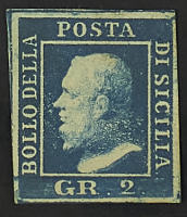 1859 - 2 gr. I tavola cobalto scuro - Raro - Cert. Diena