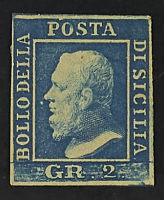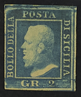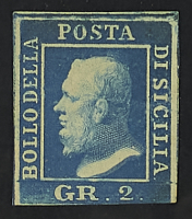 1859 - 2 gr. I tavola azzurro oltremare - Molto raro - Da esaminare - Cert. Raybaudi - Firma E.D.