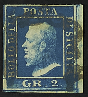 1859 - 2 gr. III tavola azzurro carta di Palermo su lettera del 25 dicembre 1863 da Vittoria per Palermo - Di grande rarità per l'utilizzo di un francobollo borbonico tre anni dopo la sua validità postale - Esemplare annullato con due tratti di penna e lettera tassata read all
