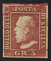 1859 - 5 gr. I tavola rosa carminio - Da esaminare - Cert. Sorani