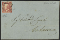 1859 - 5 gr. I tavola rosa carminio isolato su lettera del 20 luglio da Messina per Catania - Cert. Raybaudi - Firma A.D.