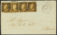 1859 - 1 gr. II tavola bruno oliva quattro esemplari con il secondo di essi pos. 19 "ritocco" su lettera del 5 febbraio da Palermo per Villarosa - Cert. Diena