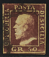 1859 - 50 gr. lacca bruno pos. 67 "ritocco" - Firma Cardillo