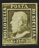 1859 - 1 gr. II tavola bruno oliva doppia stampa in senso verticale - Da esaminare - Cert. Cardillo e Marone