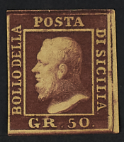 1855 - 50 gr. lacca bruno doppia incisione (pos. 62) - Un esemplare nuovo ed uno usato - Molto rari - Cert. Raybaudi - Firme E.D. e A D.