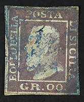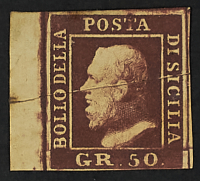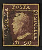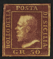 1859 - 50 gr. lacca bruno doppia incisione (pos. 43) - Molto rara - Da esaminare
