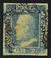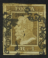 1859 - Macchie di colore - Insieme di esemplari da 1/2 gr., 1 gr., 2 gr. e 5 gr. appartenenti a diverse tavole con macchie di colore più o meno evidenti - Da esaminare - Cert. Cardillo - Firme E.D., A.D. e Sorani