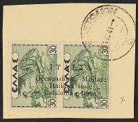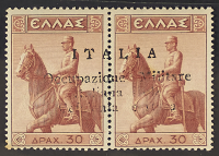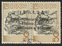 1941 - Monumento 30 + 30d. un esemplare nuovo e uno usato - Unito 1,50 + 1,50 d. usato bordo di foglio a destra - Da esaminare Oliva