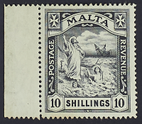 1919 - Giorgio V 10 s. nero bordo di foglio a sinistra - Cert. Diena