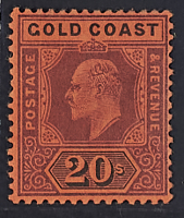 1902 - Edoardo VII 20 s. violetto e nero su carta rossa