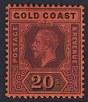 1913 - Giorgio V 20 s. violetto e nero su carta rossa esemplari