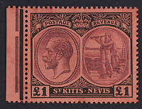 1920 - Giorgio V 1 £. violetto e nero su carta rossa bordo di foglio a sinistra
