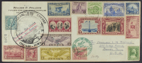 1933 - Crociera Balbo - Tappa Chicago - Roma - L'aerogramma affrancato con 45 valori di Stati Uniti - Cert. Colla