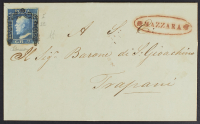 1859 - Mazzara - Ovale in rosso su lettera del 7 febbraio per Trapani affrancata con 2 gr. I tavola - Splendida - Firma A.D.