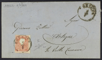 1859 - 5 s. rosso su lettera del 2 luglio (periodo di Governo Provvisorio) su lettera non tassata del 2 luglio da Lodi per Bergamo- Raro uso tollerato dopo l'introduzione dei francobolli sardi - Da esaminare