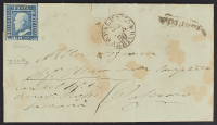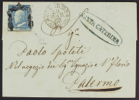 1860 - Santa Caterina - Ovale in azzurro su lettera per Palermo (arrivo il 28 marzo) affrancata con 2 gr.