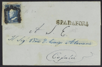 1859 - Spadafora - Stampatello diritto su lettera per Cefalù affrancata con 2 gr. III tavola azzurro scurissimo - Rara - Da esaminare - Cert. Colla - Firma A.D. e Raybaudi