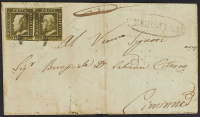 1859 - Termini - Ovale su lettera per Ciminna affrancata con 1 gr. III tavola verde oliva carta di Palermo coppia orizzontale - Molto rara - Cert. Diena
