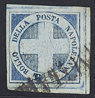 1860 - "Croce" 1/2 t. azzurro con filigrana "globo sormontato da una croce" - Pochi esemplari noti - Lieve assottigliamento ma ben marginato - Cert. Chiavarello - Firme A.D. e Savarese