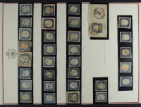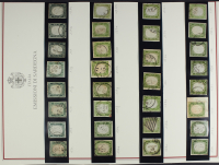 1855/58 - Insieme di esemplari ripetuti anche in multiplo dal 5 c. all'80 c. - Da esaminare - Firma A.D.