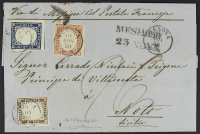 1855 - 5 c. verde + 40 c. rosso su lettera del 4 ottobre 1863 da Messina per Genova - Firma Giulio Bolaffi