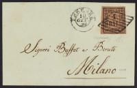 1859 - 4 baj. fulvo su lettera del 10 ottobre da Ferrara per Milano - Firme G. Bolaffi e A.D.