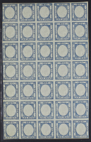 1861 - 2 gr. azzurro chiaro blocco verticale di 35 esemplari - Firma A. Bolaffi (1930)