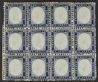 1862 - Prima emissione dentellata 20 c. indaco blocco orizzontale di dodici esemplari - Dentellatura parzialmente "aperta" e minimi punti di ossidazione ma francobolli freschi e ben centrati