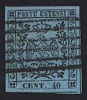 1852 - 40 c. azzurro scuro su lettera del 25 ottobre 1855 da Sassuolo per Strasissa (Illiria) - Destinazione rara