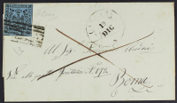 1852 - 40 c. celeste su lettera del 19 dicembre da Carrara per Roma - Cert. Diena
