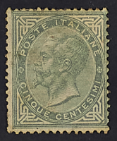 1863 - Definitiva 5 c. grigio verde tiratura di Londra - Molto fresco e ottimamente centrato - Cert. Bolaffi e Diena
