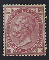 1863 - Definitiva 40 c. rosso carminio tiratura di Torino - Buona centratura - Due intrusioni nella gomma originale - Cert. Diena
