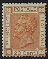 1877 - Nuovi colori 20 c. ocra arancio - Cert. Ferchenbauer - Firma Sorani