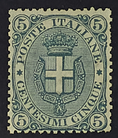 1889 - Umberto II emissione 5 c. verde scuro - Ottima centratura - Cert. Bolaffi - Firma Raybaudi
