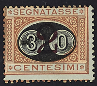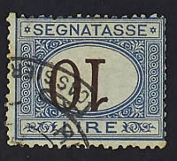 1874 - Cifra bruna 10 L. con cifra capovolta e leggermente spostata - Cert. Raybaudi