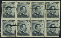 1901 - Michetti 15 c. blocco orizzontale di otto esemplari formato da quattro coppie verticali con doppia dentellatura al centro - Da esaminare