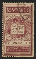 Dante 15 c. rosso brunastro + 15 c. rosa brunastro non dentellato - Uniti esemplari normali per confronto - Insieme non comune - Firma Caffaz
